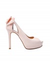 Νυφική γόβα peep toe από μεταξωτό satin , με φιογκάκι και δαντέλα .